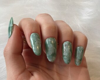 Marble Jade Short Nails Gold Jade Nails Green Nails Fashion Nails